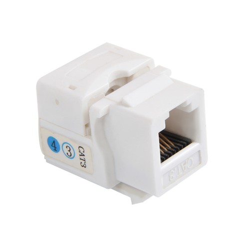Construction: Une prise Keystone est dotée d'un connecteur RJ-11 (pour les lignes téléphoniques) ou RJ-45 (pour Ethernet) à une extrémité et de bornes de connecteur autodénudant (IDC) à l'autre extrémité pour connecter les conducteurs à paire torsadée.