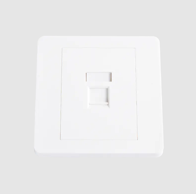 Un network faceplate is a flat plate—typically made of plastic or metal—that mounts flush against a wall or surface and houses one or more keystone jacks, RJ45 ports, or fiber adapters. It connects the structured in-wall cabling to devices like computers, phones, or switches through a simple plug-in interface.