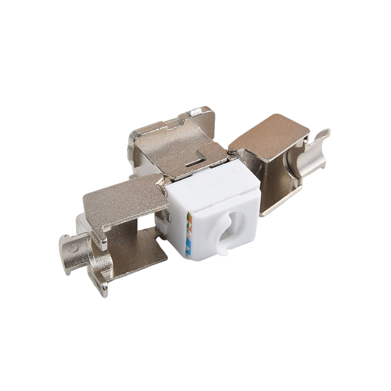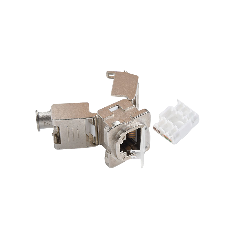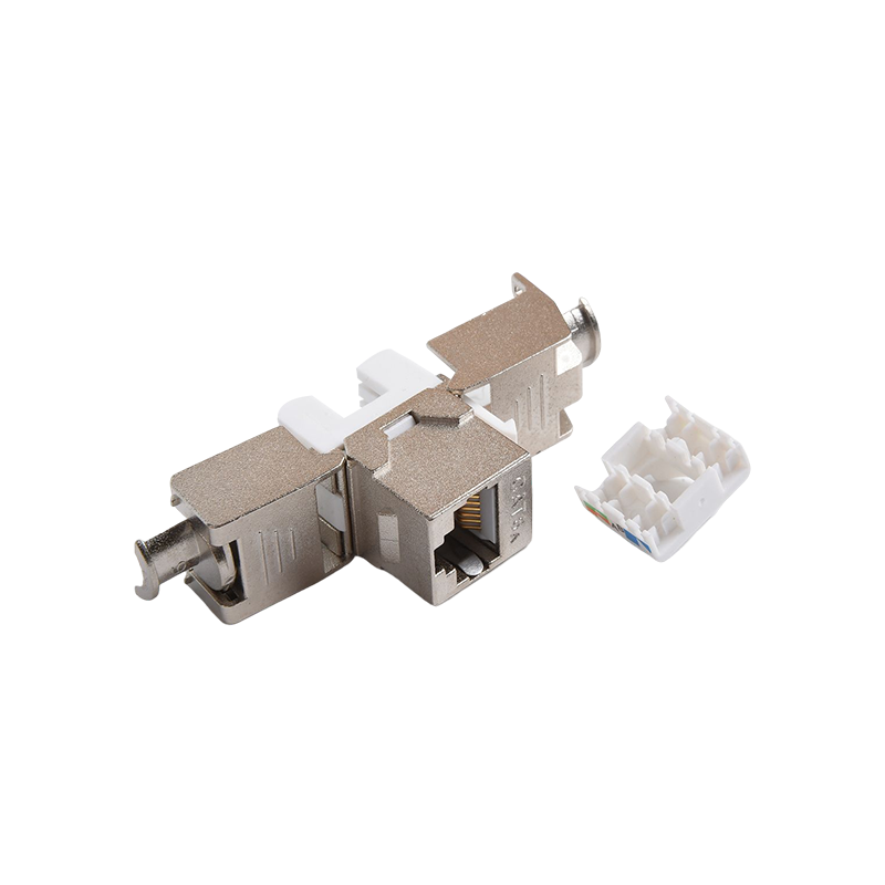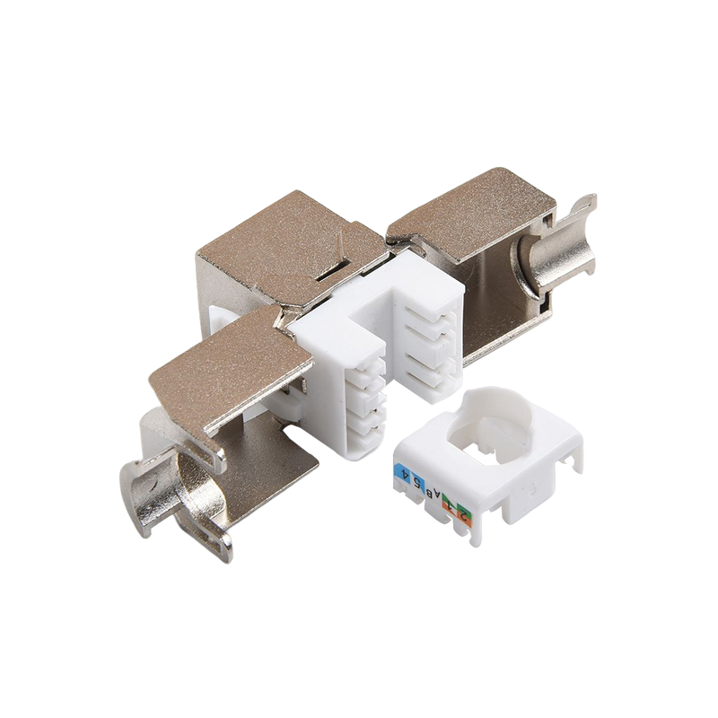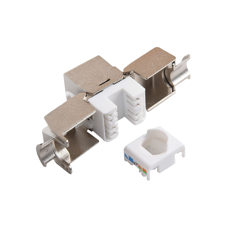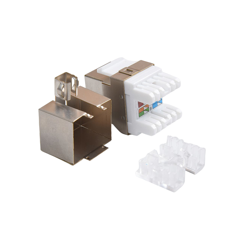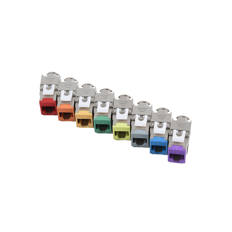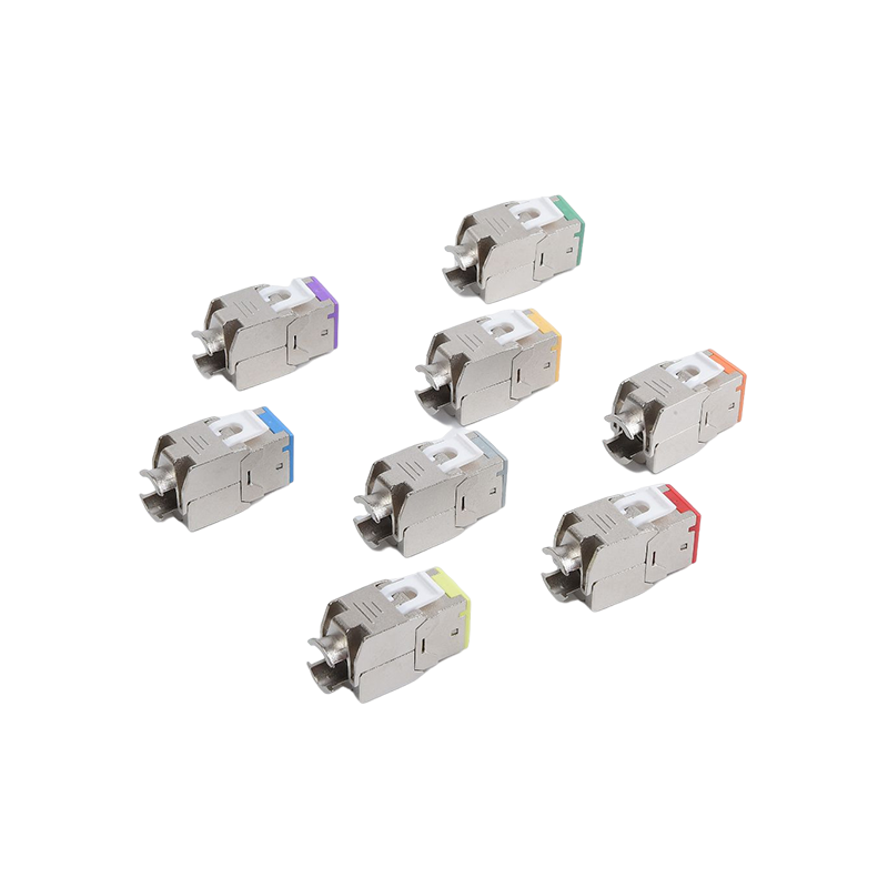 Connecteurs: les connecteurs, tels que les connecteurs RJ45, sont utilisés pour terminer les câbles en cuivre et établir des connexions avec des périphériques réseau. Ces connecteurs garantissent une transmission sécurisée et fiable des signaux. Ils sont couramment utilisés dans les panneaux de patch, les plaques de mur et les appareils réseau pour fournir des points de connectivité pour les appareils.