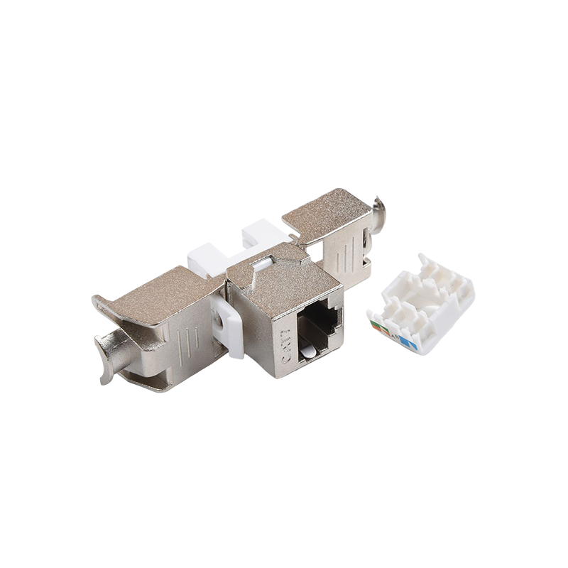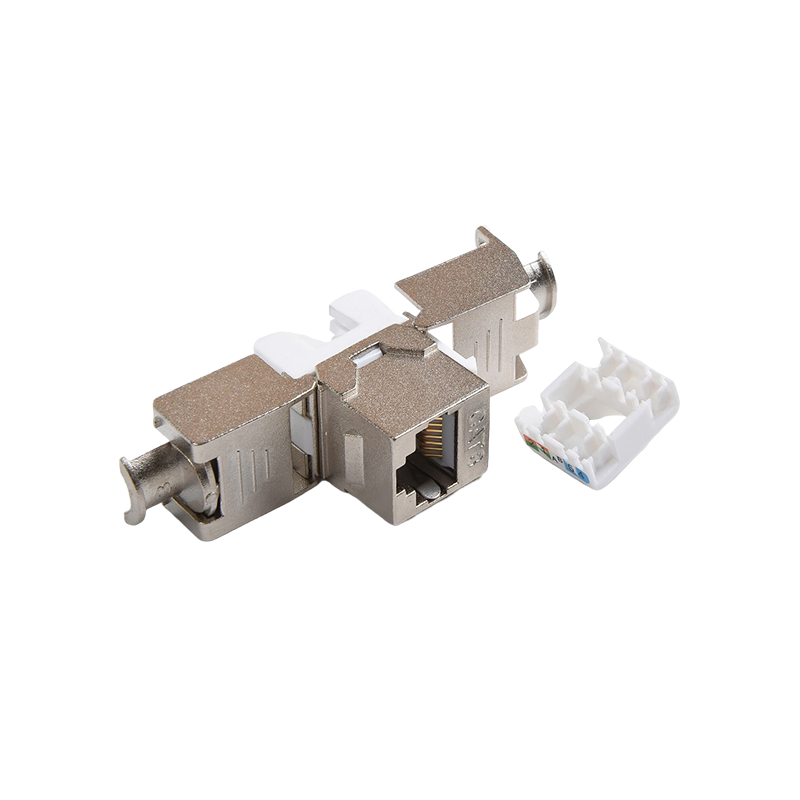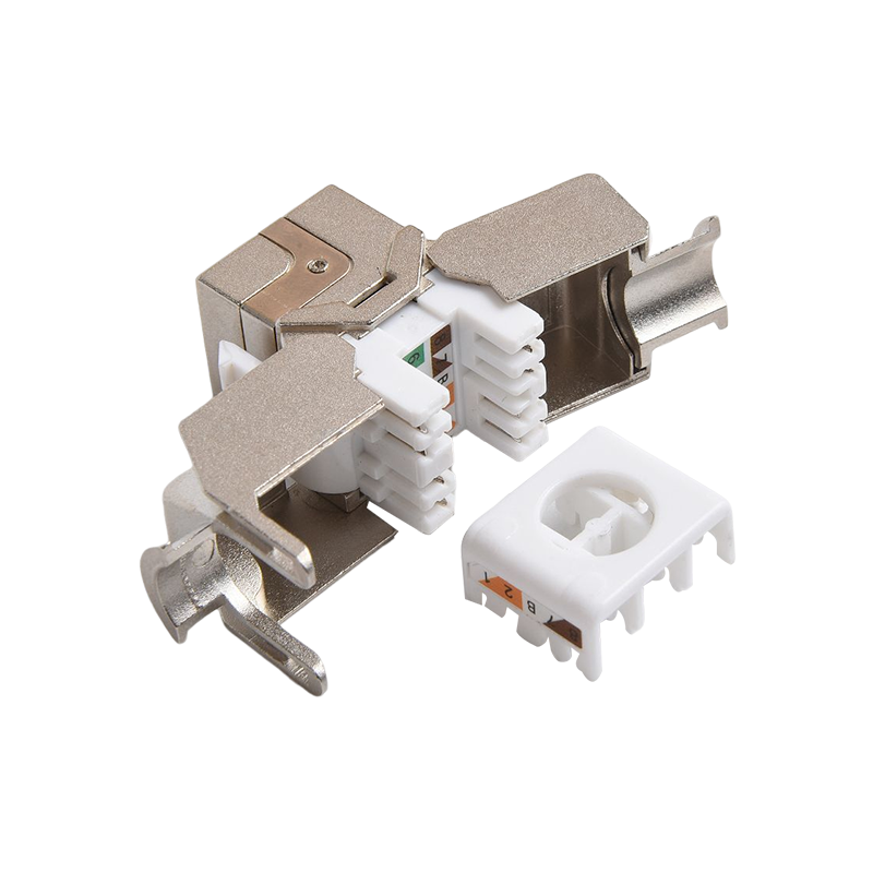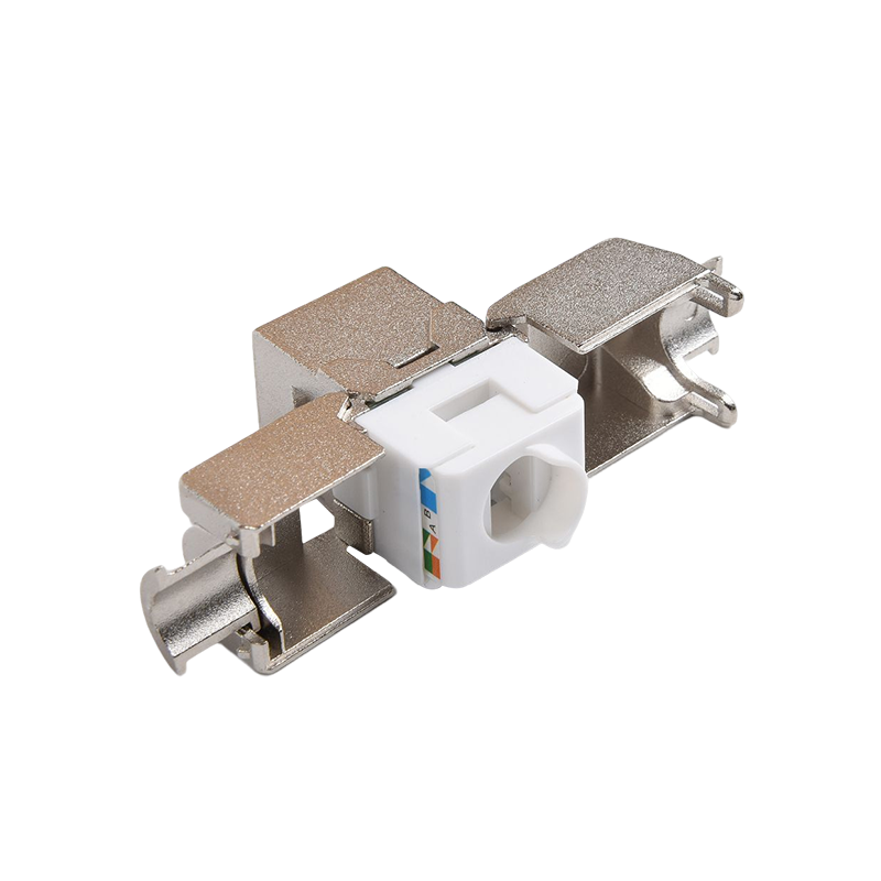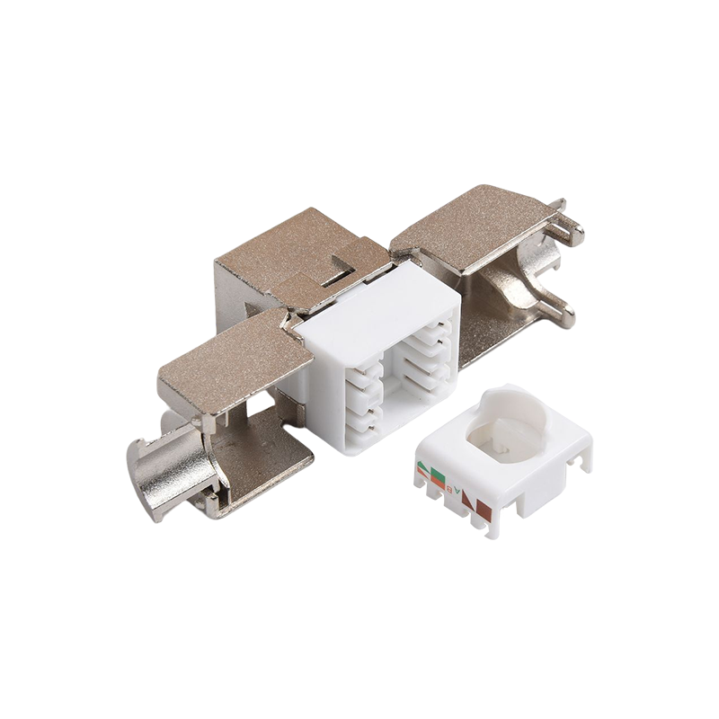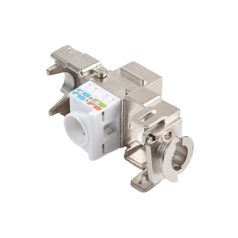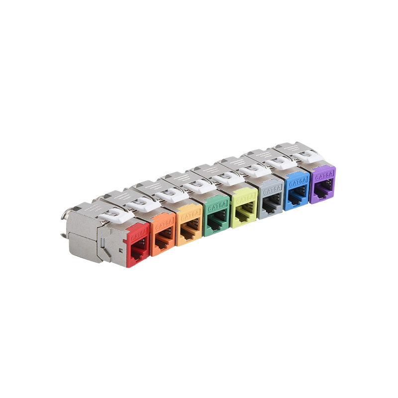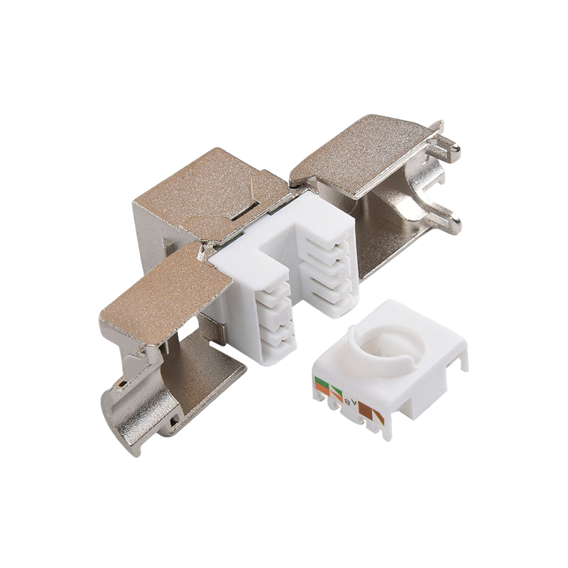 Connecteurs: les connecteurs, tels que les connecteurs RJ45, sont utilisés pour terminer les câbles en cuivre et établir des connexions avec des périphériques réseau. Ces connecteurs garantissent une transmission sécurisée et fiable des signaux. Ils sont couramment utilisés dans les panneaux de patch, les plaques de mur et les appareils réseau pour fournir des points de connectivité pour les appareils.