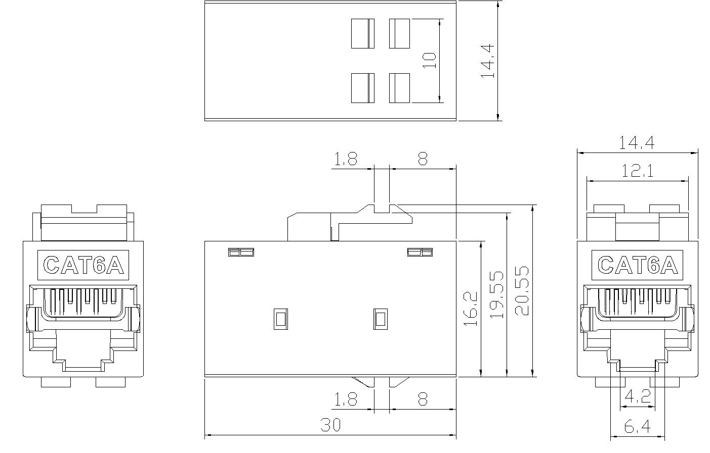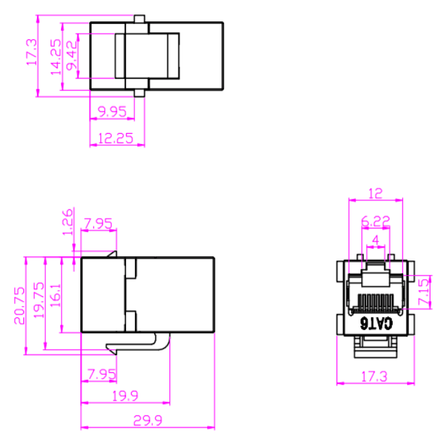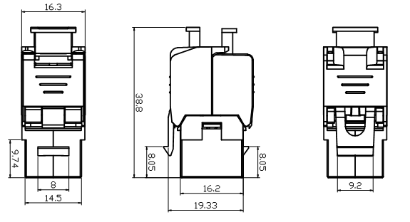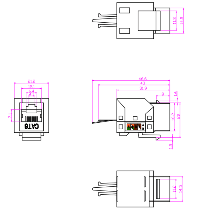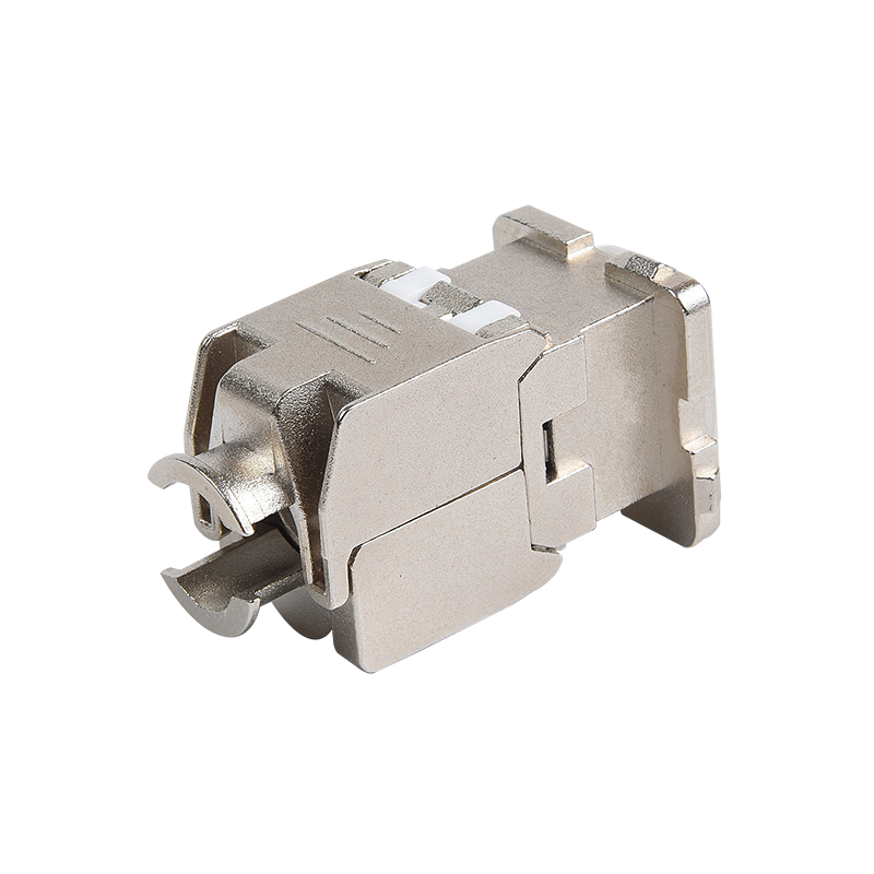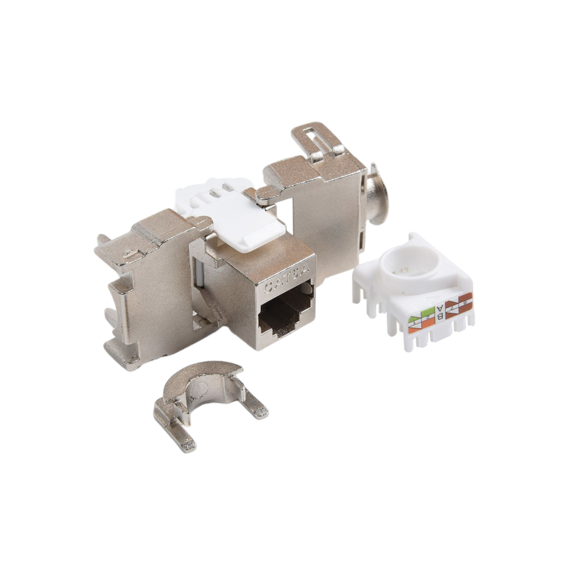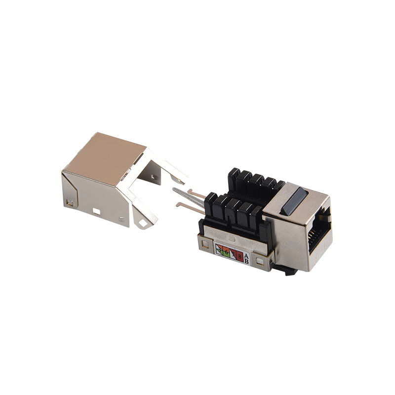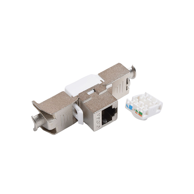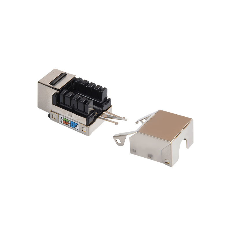Connecteurs: les connecteurs, tels que les connecteurs RJ45, sont utilisés pour terminer les câbles en cuivre et établir des connexions avec des périphériques réseau. Ces connecteurs garantissent une transmission sécurisée et fiable des signaux. Ils sont couramment utilisés dans les panneaux de patch, les plaques de mur et les appareils réseau pour fournir des points de connectivité pour les appareils.