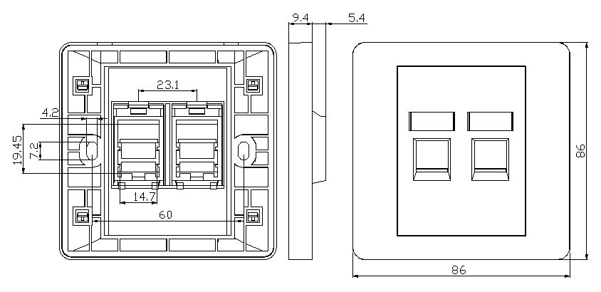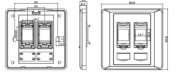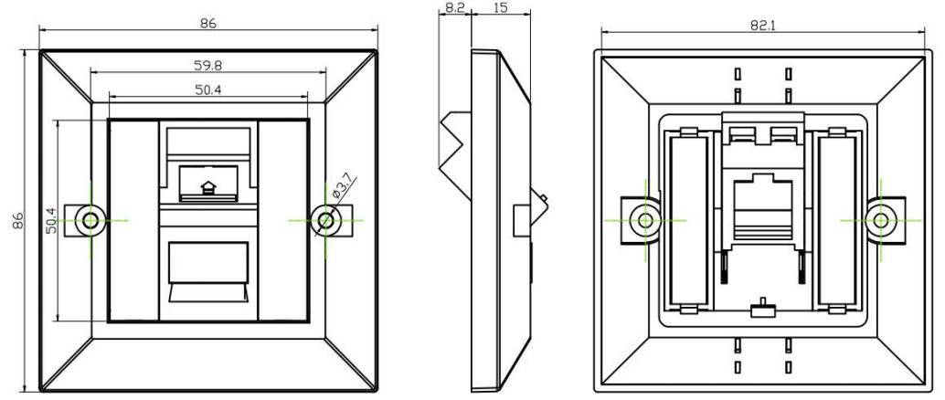 Compatibilité avec les plaques murales: les plaques de face port sont conçues pour être compatibles avec les plaques murales standard. Cela garantit qu'ils peuvent être intégrés de manière transparente aux installations électriques ou de mise en réseau existantes et offrir une apparence cohérente.