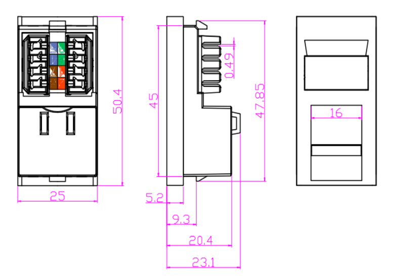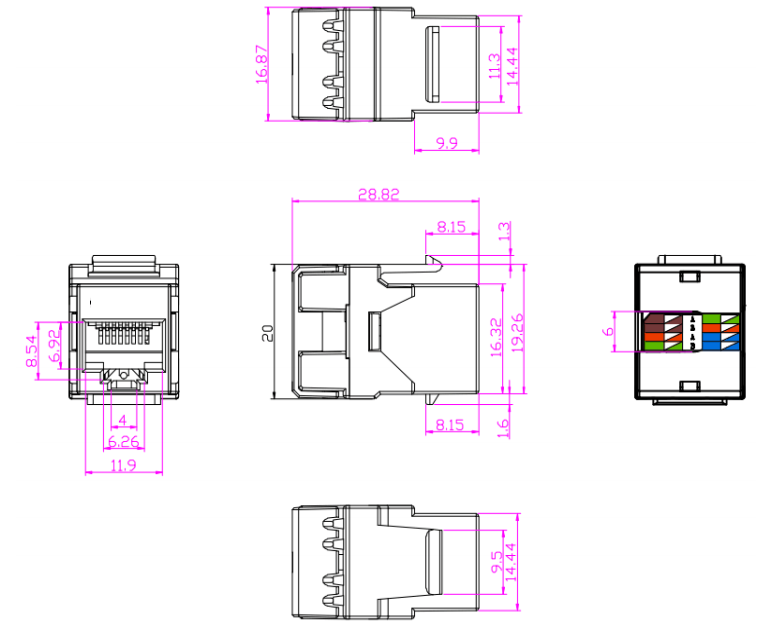 Codage des couleurs: les prises Keystone présentent souvent des schémas de câblage à code couleur pour assurer un bon alignement et une terminaison des câbles de cuivre. Le codage couleur suit les normes de l'industrie, telles que T568A ou T568B, pour maintenir la cohérence et la compatibilité au sein du système de câblage.